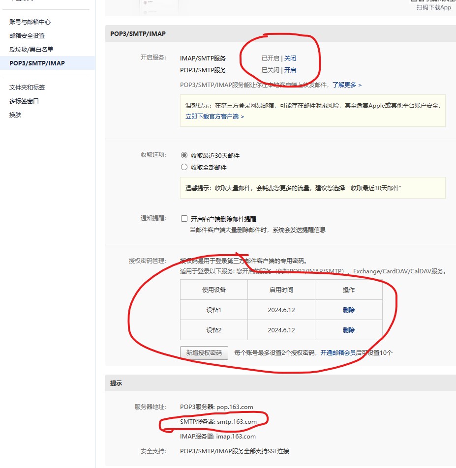 如果用25端口,邮件不能发送,出现链接错误Error: connenct to relay host smtp.163.com. 改用SSL的465端口可以链接成功,但是需要在163的邮箱设置那边开启SMTP,并获得相应的授权密码,然后用163的邮箱地址和这个授权密码来发送邮件。